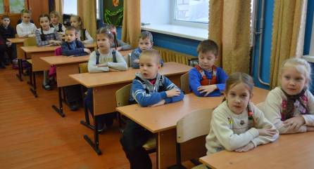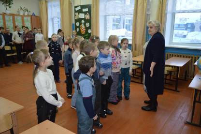 Воспитанники подготовительных групп ходили на экскурсию в школу. Меньшикова Л.Н. приветливо встретила воспитанников с учениками 4Б класса.